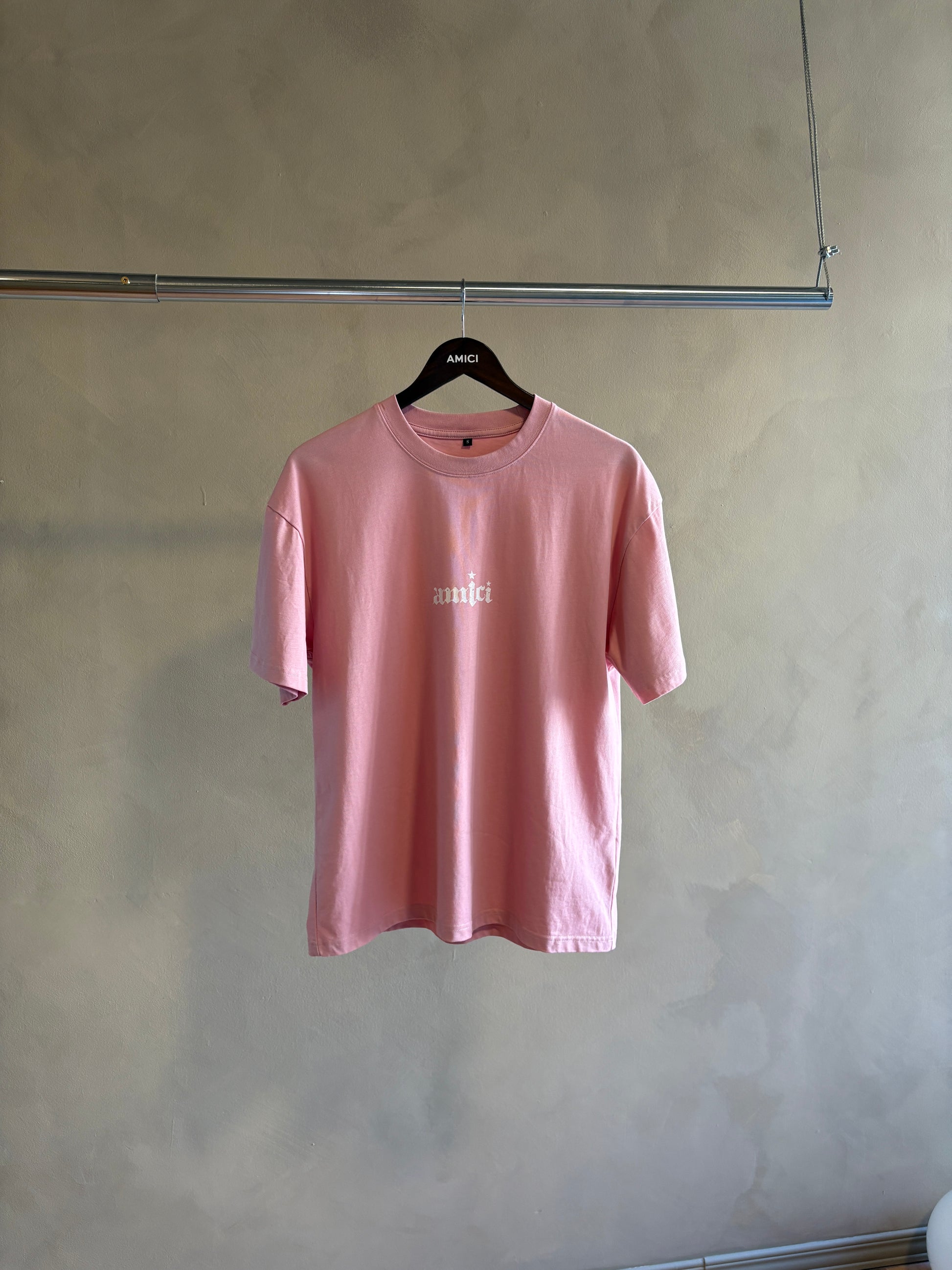 Elevate your wardrobe with the AMICI Classic Pink Tee, crafted for effortless elegance. Its refined yet comfortable design offers a timeless silhouette in a soft pink hue, perfect for sophisticated layering or standalone wear. Ideal for those who appreciate understated style with a polished finish.
